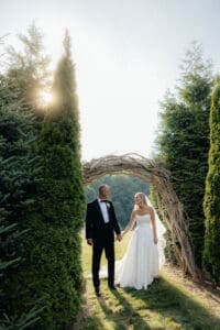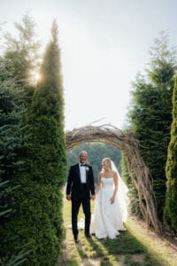 Ashley and Macauley chose this venue for its quiet atmosphere and stunning landscape. As a result, their summer wedding highlighted everything that makes this location so special. The lush greenery of the mountains paired with warm summer light created an incredibly romantic setting for their celebration.